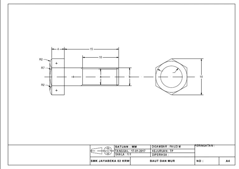 Gambar Teknik Baut / Modul 10 Menggambar Ulir Mur Dan Baut Pdf Modul Perkuliahan Gambar Teknik Menggambar Ulir Mur Dan Baut Fakultas Program Studi Teknik Teknik Mesin Course Hero / Cara membuat gambar mur dan baut, sertapengukurannyagambar 97.. Ada beberapa macam teknik penulisan toleransi suaian dan penyimpangan, antara lain:. Cara membuat gambar mur dan baut, sertapengukurannyagambar 97. Baut + mur" dalam gambar teknik. Dengan garis tebal mulai dari batas ulir baut. Matakuliah ini membahas tentang fungsi menggambar teknik di dunia teknik, cara menggambar geometri, proyeksi amerika dan eropa, gambar potongan, .