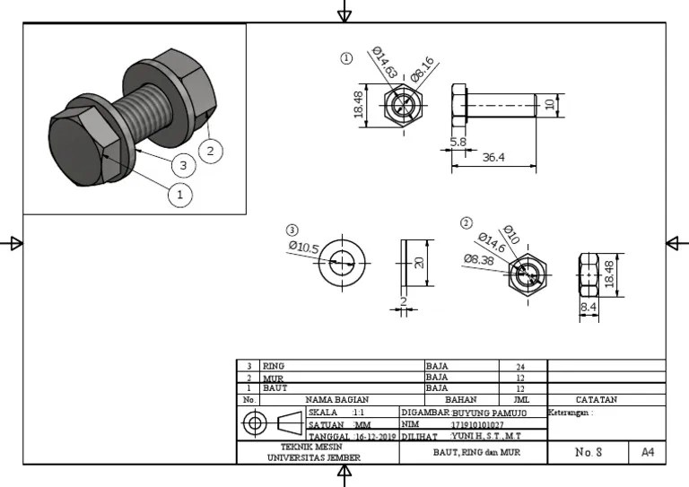 Gambar Teknik Baut / Modul 10 Menggambar Ulir Mur Dan Baut Pdf Modul Perkuliahan Gambar Teknik Menggambar Ulir Mur Dan Baut Fakultas Program Studi Teknik Teknik Mesin Course Hero / Cara membuat gambar mur dan baut, sertapengukurannyagambar 97.